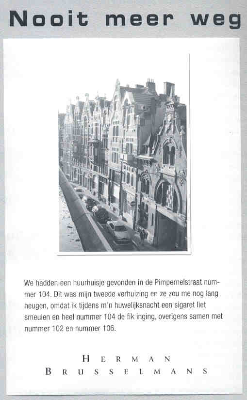 Het bevat het kort-verhaal "Nooit meer weg" van Herman Brusselmans.